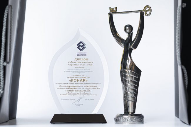 АО «КОНАР» стало победителем в номинации «Лучший реализованный проект в сфере промышленного строительства: машиностроение» конкурса «Строитель года-2020».