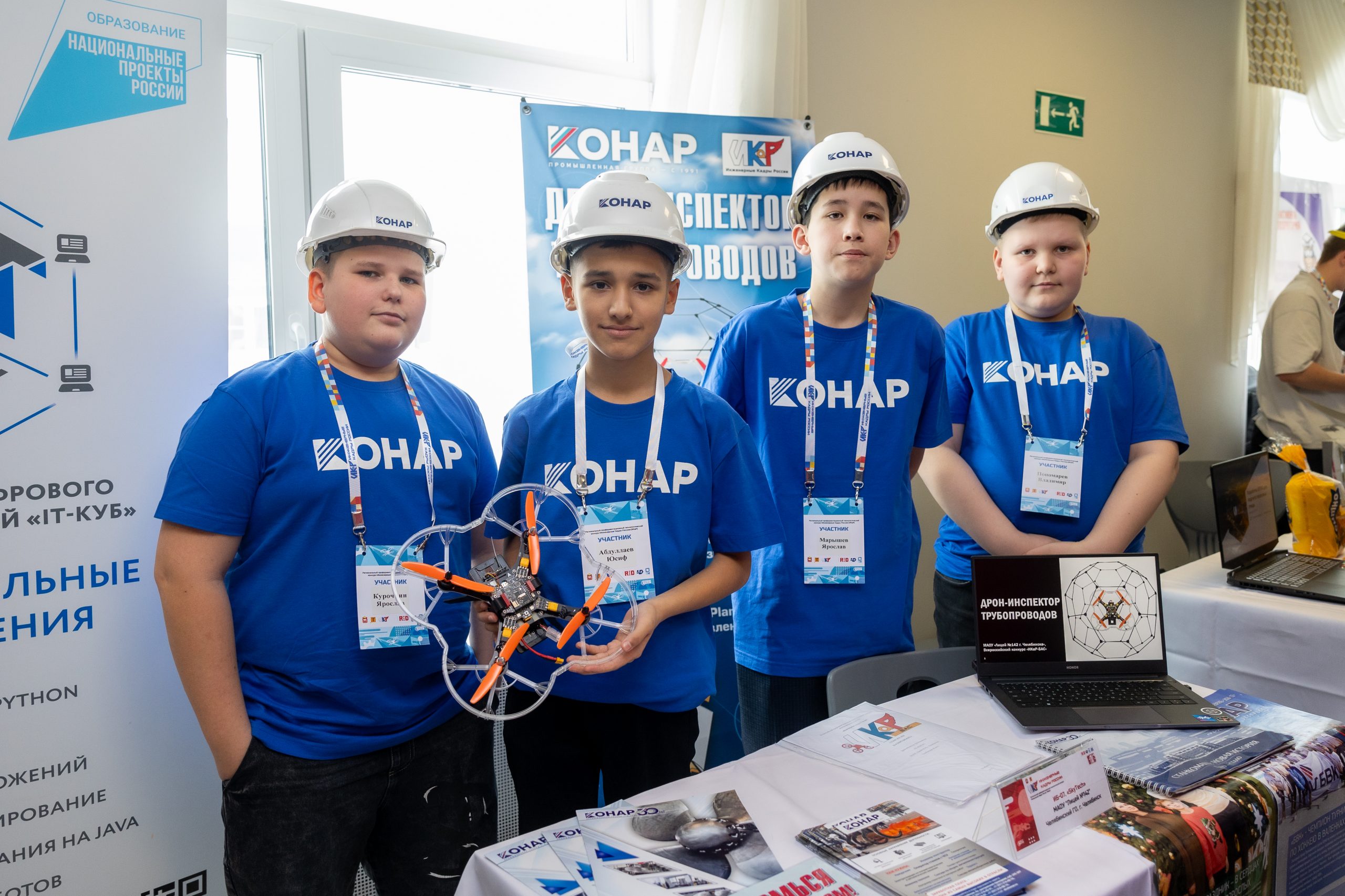 Все пять проектов с участием КОНАРа заняли призовые места в различных номинациях. Отличились также третьеклассники из команды «Умельцы», создавшие роботранспортёр для промышленной логистики, сборная «Grizzly-КОД», которая придумала систему автоматической детекции и классификации крепежных изделий, а также еще одна команда лицея № 142 – «SkyTech». Жюри отметило перспективную разработку – дрон-инспектор трубопроводов и яркую защиту проекта.
